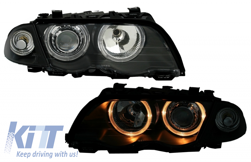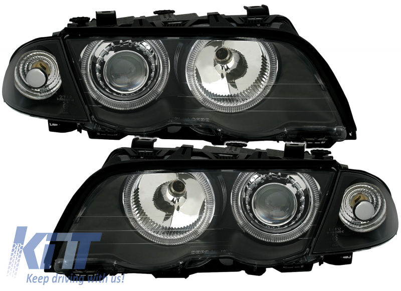 Headlights suitable for BMW 3 Series E46 Limousine Touring (05.1998-08.2001) Angel Eyes Black
