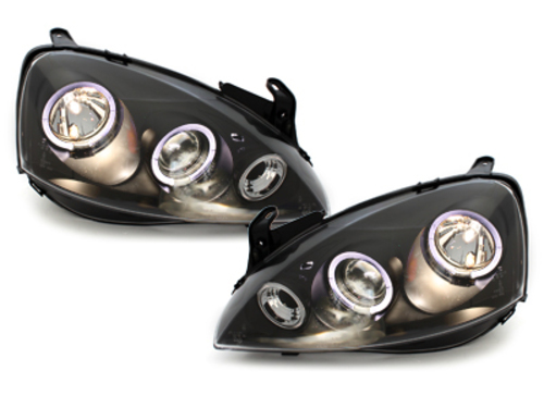 Headlights suitable for Opel Corsa C (2000-2006) Angel Eyes 2 Halo Rims Black