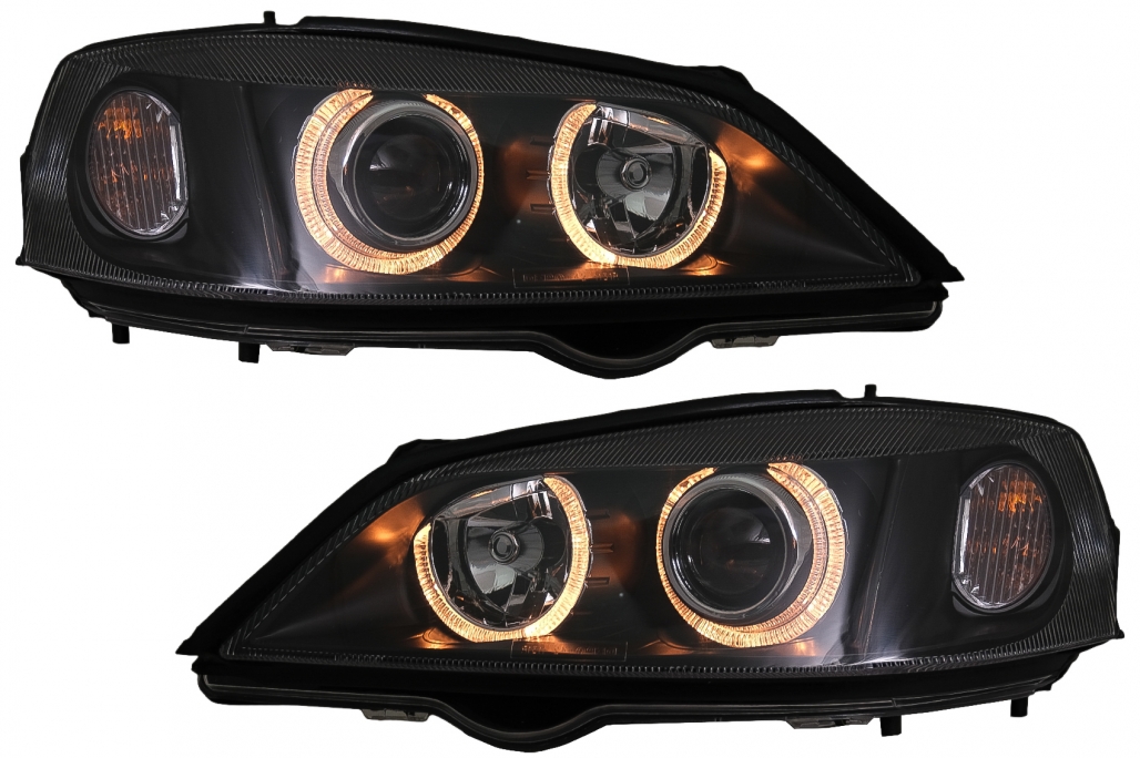 Headlights suitable for Opel Vauxhall Astra G (09.1997-02.2004) Halo Rims Lamps Black