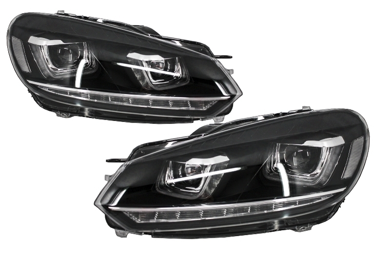 Headlights suitable for VW Golf 6 VI (2008-2013) Golf 7 3D LED DRL U-Design LED Flowing Turning Light Chrome RHD