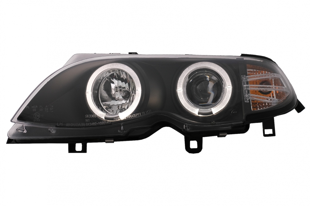 LED Angel Eyes Headlights suitable for BMW 3 Series E46 Facelift Limousine Touring (2001-2005) Black