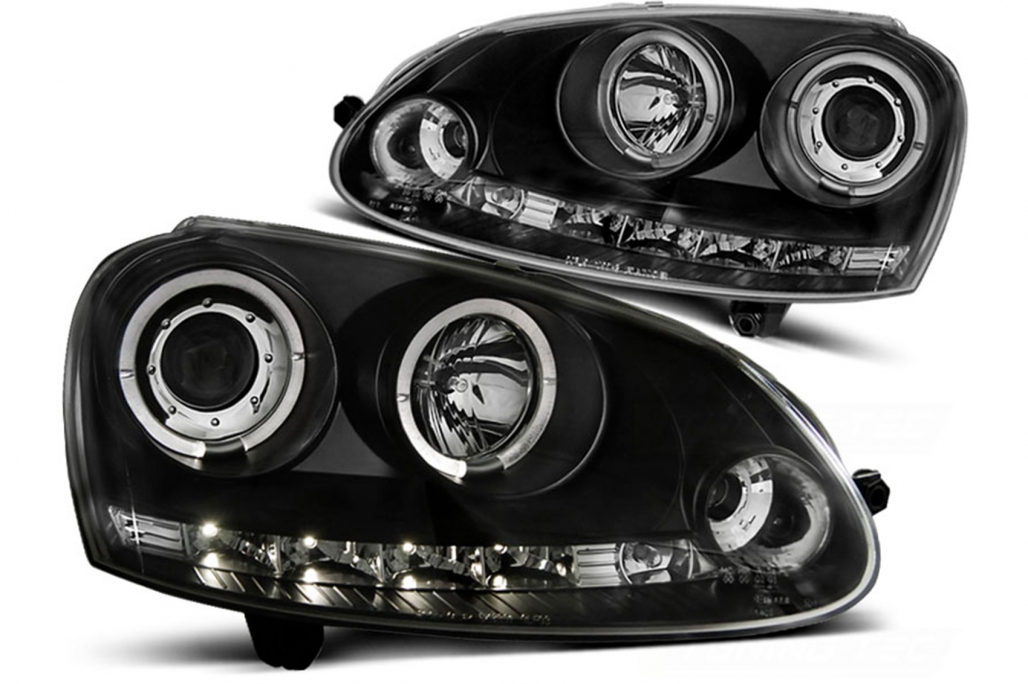 LED Angel Eyes Headlights suitable for VW Golf V 5 (2004-2009) Jetta (2005-2010) Black