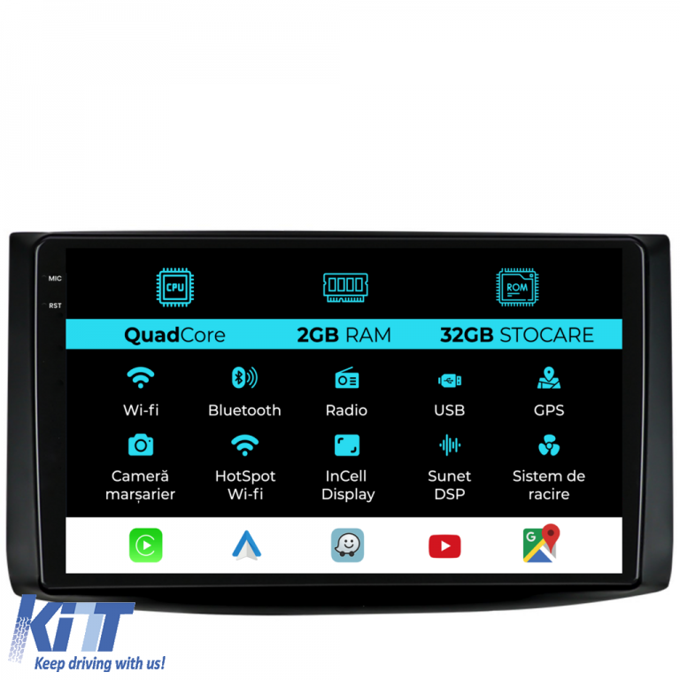 Old DescriptionOperating system: Android 13 Processor: Quadcore RAM memory: 2GB Internal storage (ROM): 32GB Display size: 9 Inch Screen resolution: 1360x800p Bluetooth: Bluetooth for calls contact list download and music playback WiFi: Yes (Built-in) 4G SIM Slot: No Network connectivity: Phone hotspot external router 3G or 4G dongle CarPlay Android Auto Microphone: Built-in microphone with the possibility of connecting an external microphone Power supply: 12V Audio power: 4x45W DSP equalizer: Digital sound processor (DSP EQ) USB SD compatibility: Suitable for USB up to 128GB SD support through USB adapter Android app compatibility: Suitable for most Android applications from Google Play CarPlay and Android Auto compatibility: Yes suitable for iOS (CarPlay) and Android (Android Auto) Language support: Romanian English Hungarian Spanish Italian German etc. Screen type: Capacitive TouchScreen multi-touch IPS Brightness settings: Yes RDS Radio: Yes RCA subwoofer output: Yes RCA video output: Yes using a USB adapter RCA audio output: Yes GPS: Yes (Google Maps Waze HereWeGo) Parking sensors: Yes (Parking sensor integration with display where applicable) Steering wheel control: Yes (Steering wheel command integration with canbus or analog where applicable) DVR camera compatibility: Yes Reverse camera compatibility: Yes User manual: Yes Package content: Android navigation Adapter frame Power wiring GPS antenna RCA connectors Wiring for reverse camera 2 USB cables Canbus (only if applicable) Warranty certificate Fiscal invoice Navigation is suitable for the following car brands: Chevrolet: Aveo (2002-2011)