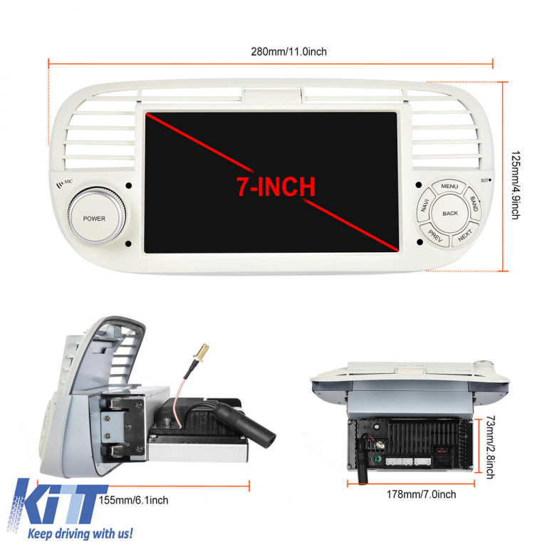 Old DescriptionOperating System: Android 13 Processor: Quad-core RAM: 2GB Internal Storage (ROM): 32GB Display Size: 7 Inch Screen Resolution: 1280x720p Bluetooth: Bluetooth for calls phonebook download music playback WiFi: Yes (Integrated) 4G SIM Slot: No Network Connectivity: Phone hotspot external router 3G or 4G dongle CarPlay Android Auto Microphone: Built-in microphone with option for external microphone Power Supply: 12V Audio Power: 4x45W DSP Equalizer: Digital sound processor (DSP EQ) USB SD Compatibility: Suitable for USB up to 64GB SD support via USB adapter Android Apps Compatibility: Suitable for most Android applications from Google Play CarPlay and Android Auto Compatibility: Yes suitable for iOS (CarPlay) and Android (Android Auto) Language Support: Romanian English Hungarian Spanish Italian German etc. Screen Type: Capacitive TouchScreen multi-touch IPS Brightness Settings: Yes RDS Radio: Yes RCA Subwoofer Output: Yes RCA Video Output: Yes with the help of a USB adapter RCA Audio Output: Yes GPS: Yes Google Maps Waze HereWeGo Parking Sensors: Yes (Retrieval of parking sensors with display where applicable) Steering Wheel Control: Yes (Retrieval of steering wheel commands with canbus or analog where applicable) DVR Camera Compatibility: Yes Reverse Camera Compatibility: Yes User Manual: Yes Package Content: Android Navigation Adapter Frame Power Wiring GPS Antenna RCA Connectors Wiring for Reverse Camera 2 USB Cables Canbus Warranty Certificate Tax Invoice Navigation is suitable for the following car brands: Fiat: 500 (2007-2015)