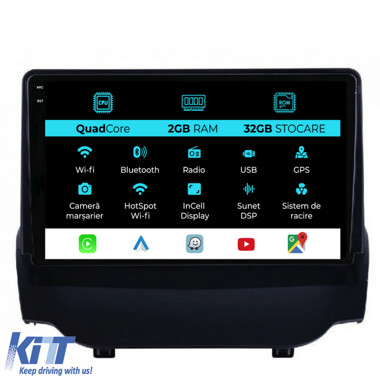 Old DescriptionOperating system: Android 13 Processor: Quadcore RAM Memory: 2GB Internal storage (ROM): 32GB Display size: 9 Inch Screen resolution: 1360x800p Bluetooth: Bluetooth for calls downloading phonebook and music playback WiFi: Yes (Integrated) 4G SIM Slot: No Network connectivity: Phone hotspot external router 3G or 4G dongle CarPlay Android Auto Microphone: Integrated microphone with possibility of connecting external microphone Power supply: 12V Audio power: 4x45W DSP equalizer: Digital sound processor (DSP EQ) USB SD compatibility: Suitable for USB up to 128GB SD support via USB adapter Android app compatibility: Suitable for most Android apps from Google Play CarPlay and Android Auto compatibility: Yes suitable for iOS (CarPlay) and Android (Android Auto) Language support: Romanian English Hungarian Spanish Italian German etc. Screen type: Capacitive TouchScreen multi-touch IPS Brightness settings: Yes RDS radio: Yes RCA subwoofer output: Yes RCA video output: Yes with the help of a USB adapter RCA audio output: Yes GPS: Yes (Google Maps Waze HereWeGo) Parking sensors: Yes (Parking sensor integration with display where applicable) Steering wheel control: Yes (Steering wheel commands integration with canbus or analog where applicable) DVR camera compatibility: Yes Rear view camera compatibility: Yes User manual: Yes Package contents: Android navigation Adapter frame Power wiring GPS antenna RCA connectors Wiring for rear view camera 2 USB cables Canbus (only if applicable) Warranty certificate Invoice The navigation is suitable for the following car brands: Ford: EcoSport (2013-2016).