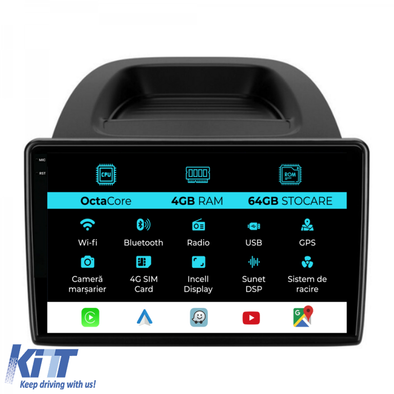Old DescriptionOperating System: Android 13 Processor: Octa-core 1.8Ghz RAM: 4GB Internal Storage (ROM): 64GB Display Size: 9 Inch Screen Resolution: 1360x800p Bluetooth: Bluetooth for calls phonebook download and music playback WiFi: Yes (Integrated) 4G SIM Slot: Yes Network Connectivity: 4G phone hotspot external router 3G or 4G dongle CarPlay Android Auto Microphone: Integrated microphone with the possibility of connecting an external microphone Power Supply: 12V Audio Power: 4x45W DSP Equalizer: Digital sound processor (DSP EQ) USB SD Compatibility: Suitable for USB up to 128GB SD support via USB adapter Android App Compatibility: Suitable for most Android applications from Google Play CarPlay and Android Auto Compatibility: Yes suitable for iOS (CarPlay) and Android (Android Auto) Language Support: Romanian English Hungarian Spanish Italian German etc. Screen Type: Capacitive TouchScreen multi-touch IPS Brightness Settings: Yes RDS Radio: Yes RCA Subwoofer Output: Yes RCA Video Output: Yes with the help of a USB adapter RCA Audio Output: Yes GPS: Yes (Google Maps Waze HereWeGo) Parking Sensors: Yes (Parking sensor integration with display where applicable) Steering Wheel Control: Yes (Steering wheel commands integration with canbus or analog where applicable) DVR Camera Compatibility: Yes Reverse Camera Compatibility: Yes User Manual: Yes Package Content: Android Navigation Adapter frame Power wiring GPS antenna 4G antenna RCA connectors Wiring for reverse camera 2 USB cables Canbus (only if applicable) Warranty certificate Invoice The navigation is suitable for the following car brands: Ford: EcoSport (2017-2025).