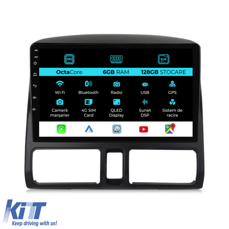 Old DescriptionOperating system: Android 13 Processor: Octa-core 1.8Ghz RAM: 6GB Internal storage (ROM): 128GB Display size: 9 Inch Screen resolution: 1280x720p Bluetooth: Bluetooth for calls phonebook download and music playback WiFi: Yes (Built-in) 4G SIM slot: Yes Network connectivity: 4G phone hotspot external router 3G or 4G dongle CarPlay Android Auto Microphone: Built-in microphone with the possibility to connect an external microphone Power supply: 12V Audio power: 4x45W DSP Equalizer: Digital sound processor (DSP EQ) USB SD compatibility: Suitable for USB up to 128GB SD support via USB adapter Android application compatibility: Suitable for most Android applications from Google Play CarPlay and Android Auto compatibility: Yes suitable for iOS (CarPlay) and Android (Android Auto) Language support: Romanian English Hungarian Spanish Italian German etc. Screen type: Capacitive touchscreen multi-touch IPS Brightness settings: Yes RDS Radio: Yes RCA subwoofer output: Yes RCA video output: Yes using a USB adapter RCA audio output: Yes GPS: Yes (Google Maps Waze HereWeGo) Parking sensors: Yes (Takes parking sensor display where applicable) Steering control: Yes (Takes steering wheel controls with canbus or analog where applicable) DVR camera compatibility: Yes Reverse camera compatibility: Yes User manual: Yes Package contents: Android navigation Adapter frame Power cable GPS antenna 4G antenna RCA connectors Wiring for reverse camera 2 USB cables Canbus (only if applicable) Warranty certificate Fiscal invoice Navigation is suitable for the following car brands: Honda: CR-V (2001 – 2006)