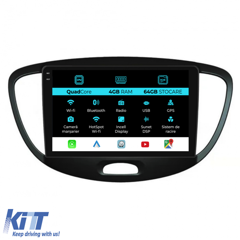 Navigation for Hyundai I10 (2007-2013), QuadCore, 9 Inch, 4Gb Ram, 64Gb Storage, Carplay
