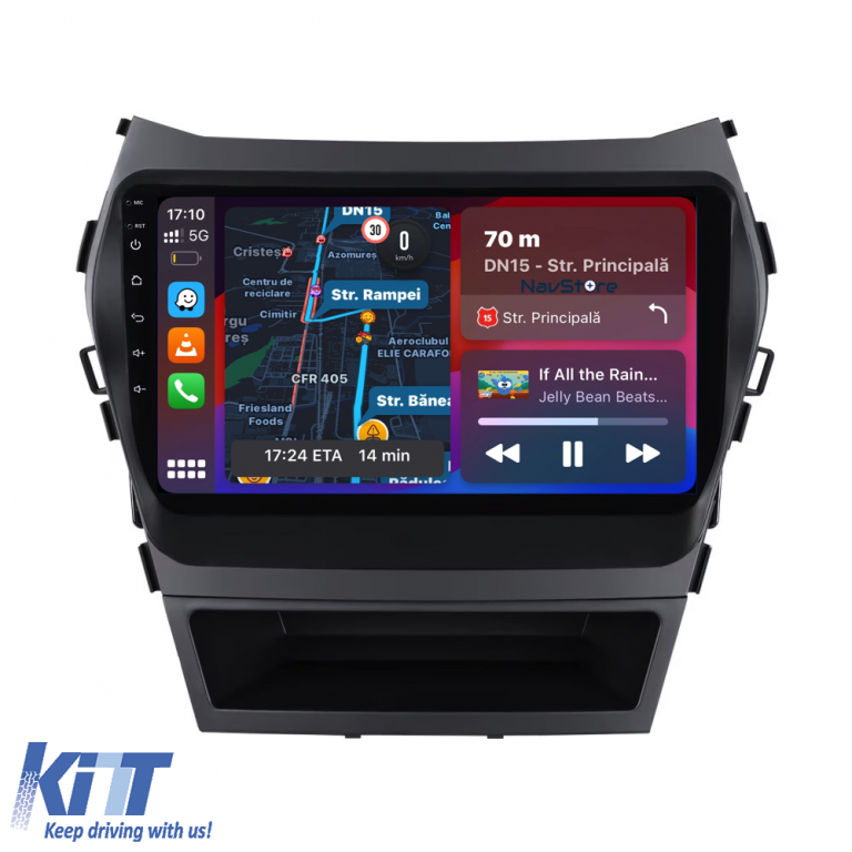 Old DescriptionTechnical Specifications: Operating System: Android 14 Screen Size: 9 inches with touchscreen RAM: 4 GB Internal Memory: 64 GB Processor: Octa-Core 1.6 GHz Chip: 8581 Connection: USB (audio video file playback) Wi-Fi (internet connection can be made via hotspot or SIM) Bluetooth (audio playback or calling function) Built-in Microphone Wiring for connection with subwoofer and additional speakers. Resolution: 1280 720 1080P HD video. Display: QLED RDS Radio External Microphone 4G (slot for SIM card) Integrated DSP (DTS Sound) Apple CarPlay and Android Auto Wireless Fan for more efficient cooling Functions: Takes over steering wheel controls and vehicle information. Takes over parking sensors (displays sensors only if they are OEM front-rear). Mirror link compatible with Android and iOS. CarPlay USB output (audio and video playback) Audio output 4x50W RCA cables for subwoofer. Connects phone via bluetooth (audio playback from phone phone calls phonebook). Supports rearview camera ADH and DVR camera. Package contents: 1 x Car Navigation 1 x GPS Antenna 1 x RCA Cables 1 x Camera RCA Cable 1 x USB Cable 1 x 4G Antenna 1 x SIM Card Holder 1 x Canbus 1 x Power Connectors Navigation is suitable for the following car brands: Hyundai: IX45 SantaFe (2013 – 2017).