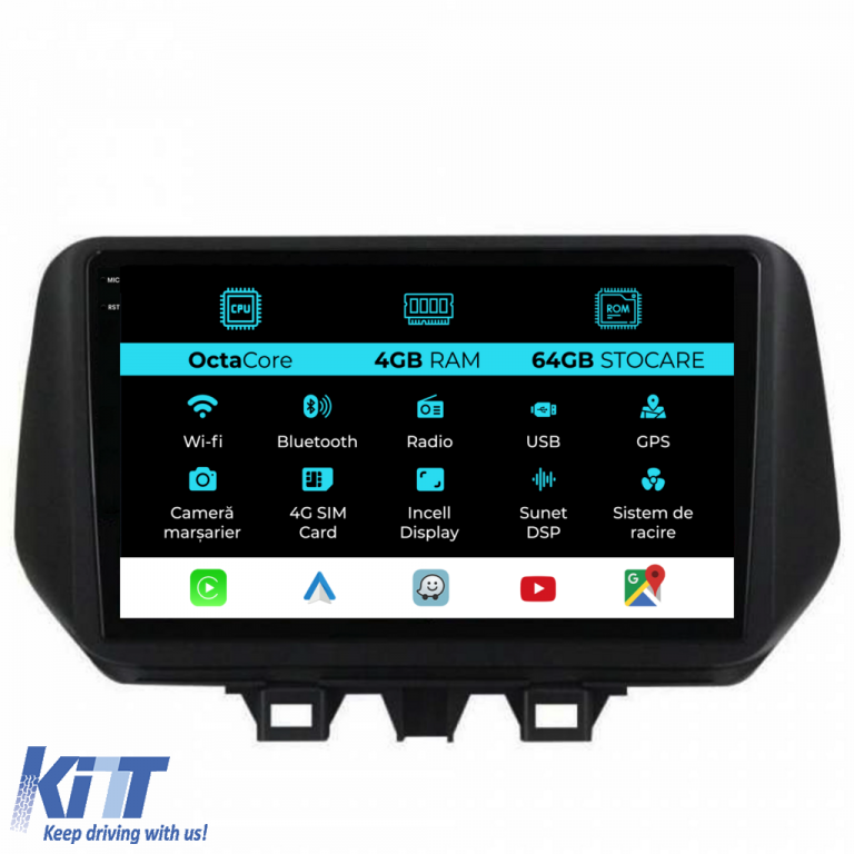 Old DescriptionOperating system: Android 13 Processor: Octa-core RAM: 4GB Internal storage (ROM): 64GB Display size: 9 Inch Screen resolution: 1360x800p Bluetooth: Bluetooth for calls phonebook download and music playback WiFi: Yes (Built-in) 4G SIM Slot: Yes Network connectivity: 4G phone hotspot external router 3G or 4G dongle CarPlay Android Auto Microphone: Built-in microphone with option to connect external microphone Power supply: 12V Audio power: 4x45W DSP Equalizer: Digital Sound Processor (DSP EQ) USB SD compatibility: Suitable for USB up to 128GB SD support via USB adapter Android application compatibility: Suitable for most Android applications from Google Play CarPlay and Android Auto compatibility: Yes suitable for iOS (CarPlay) and Android (Android Auto) Language support: Romanian English Hungarian Spanish Italian German etc. Screen type: Capacitive TouchScreen multi-touch IPS Brightness settings: Yes RDS Radio: Yes RCA subwoofer output: Yes RCA video output: Yes with the help of a USB adapter RCA audio output: Yes GPS: Yes (Google Maps Waze HereWeGo) Parking sensors: Yes (Integration of parking sensors with display where applicable) Steering control: Yes (Integration of steering commands with canbus or analog where applicable) DVR camera compatibility: Yes Reversing camera compatibility: Yes User manual: Yes Package contents: Android navigation Adapter frame Power wiring GPS antenna 4G antenna RCA connectors Wiring for reversing camera 2 USB cables Canbus (only if applicable) Warranty certificate Fiscal invoice Navigation is suitable for the following car brands: Hyundai: Tucson (2018-2020)