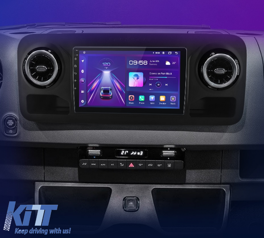 Old DescriptionOperating System: Android 13 Processor: Octa-core 1.8Ghz RAM Memory: 6GB Internal Storage (ROM): 128GB Display Size: 10 Inch Screen Resolution: 1280x720p Bluetooth: Bluetooth for calls phonebook download and music playback WiFi: Yes (Integrated) 4G SIM Slot: Yes Network Connectivity: 4G phone hotspot external router 3G or 4G dongle CarPlay Android Auto Microphone: Integrated microphone with the possibility of connecting an external microphone Power Supply: 12V Audio Power: 4x45W DSP Equalizer: Digital Sound Processor (DSP EQ) USB SD Compatibility: Suitable for USB up to 128GB SD support via USB adapter Android App Compatibility: Suitable for most Android applications from Google Play CarPlay and Android Auto Compatibility: Yes suitable for iOS (CarPlay) and Android (Android Auto) Language Support: Romanian English Hungarian Spanish Italian German etc. Screen Type: Capacitive TouchScreen multi-touch IPS Brightness Settings: Yes RDS Radio: Yes RCA Subwoofer Output: Yes RCA Video Output: Yes with the help of a USB adapter RCA Audio Output: Yes GPS: Yes (Google Maps Waze HereWeGo) Parking Sensors: Yes (Parking sensor takeover with display where applicable) Steering Wheel Control: Yes (Steering wheel command takeover with canbus or analog where applicable) DVR Camera Compatibility: Yes Reverse Camera Compatibility: Yes User Manual: Yes Package Contents: Android Navigation Adaptor frame Power cabling GPS antenna 4G antenna RCA connectors Cabling for reverse camera 2 USB cables Canbus (only where applicable) Warranty certificate Fiscal invoice The navigation is suitable for the following car brands: Mercedes Benz: Sprinter (2018 – 2023)