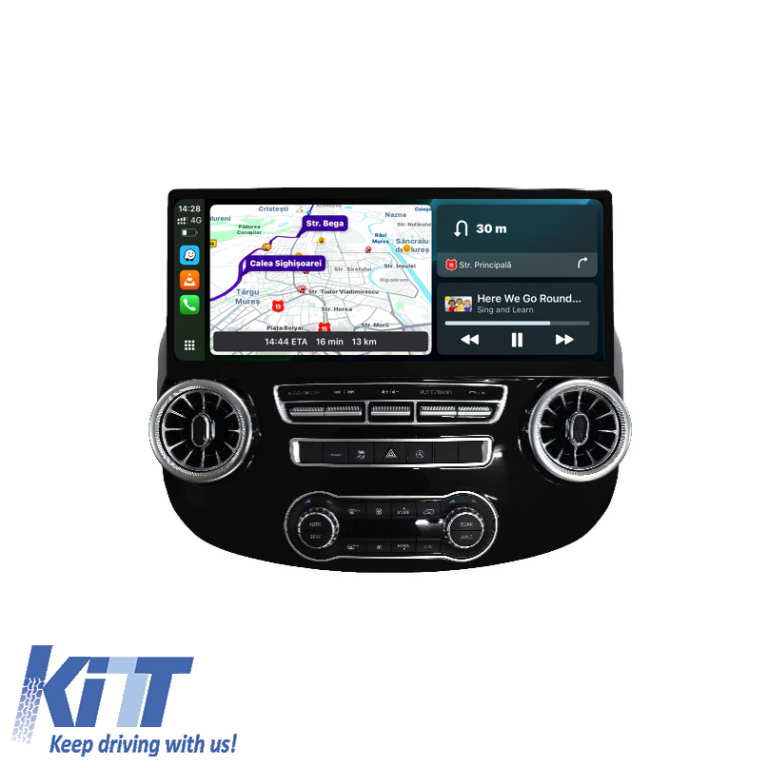 Old DescriptionTechnical Specifications: Operating System: Android 13 Screen Size: 17 inches with touchscreen RAM Memory: 8 GB Internal Memory: 256GB Processor: Octa-Core 2.7 GHz Chip: 7870 Connectivity: USB (play audio video files) Wi-Fi (internet connection can be made through hotspot) Bluetooth (audio playback or calling function) Built-in Microphone Wiring for connection with subwoofer and additional speakers. Resolution: 2880 1080 1080P HD video. Display: QLED RDS Radio External Microphone 4G (slot for SIM card) Integrated DSP (DTS Sound) Apple Carplay and Android Auto Wireless Functions: Takes commands from the steering wheel and vehicle information. Takes parking sensors (displays sensors only if they are from OEM front-rear). USB output (audio and video playback) Audio output 4x50W RCA cables for subwoofer. Phone connection via bluetooth (audio playback from phone phone calls phonebook). Supports rearview camera or DVR camera. Package contents: 1 x Car Navigation 1 x GPS Antenna 1 x RCA Cables 1 x RCA camera cable 1 x USB Cable 1 x 4G Antenna 1 x SIM card holder 1 x Power plugs. Navigation suitable for the following car brands: Mercedes Benz: Vito W447 (2014 – 2021)