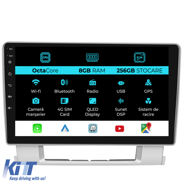 Old DescriptionOperating System: Android 13 Processor: Octa-core 2.0Ghz RAM Memory: 8GB Internal Storage (ROM): 256GB Display Size: 9 Inch Screen Resolution: 1280x720p Bluetooth: Bluetooth for calls phone book download and music playback WiFi: Yes (Integrated) 4G Sim Slot: Yes Network Connectivity: 4G phone hotspot external router 3G or 4G dongle CarPlay Android Auto Microphone: Built-in microphone with the option to connect an external microphone Power Supply: 12V Audio Power: 4x45W DSP Equalizer: Digital Sound Processor (DSP EQ) USB SD Compatibility: Suitable for USB up to 128GB SD support via USB adapter Android App Compatibility: Suitable for most Android apps from Google Play CarPlay and Android Auto Compatibility: Yes suitable for iOS (CarPlay) and Android (Android Auto) Language Support: Romanian English Hungarian Spanish Italian German etc. Screen Type: Capacitive TouchScreen multi-touch IPS Brightness Settings: Yes RDS Radio: Yes RCA Subwoofer Output: Yes RCA Video Output: Yes using a USB adapter RCA Audio Output: Yes GPS: Yes (Google Maps Waze HereWeGo) Parking Sensors: Yes (Parking sensor pickup with display where applicable) Steering Wheel Control: Yes (Steering wheel controls pickup with canbus or analog where applicable) DVR Camera Compatibility: Yes Reversing Camera Compatibility: Yes User Manual: Yes Package Contents: Android Navigation Adapter frame Power wiring GPS antenna 4G antenna RCA connectors Wiring for reversing camera 2 USB cables Canbus (only if applicable) Warranty certificate Fiscal invoice The navigation is suitable for the following car brands: Opel: Astra J (2010 – 2015)