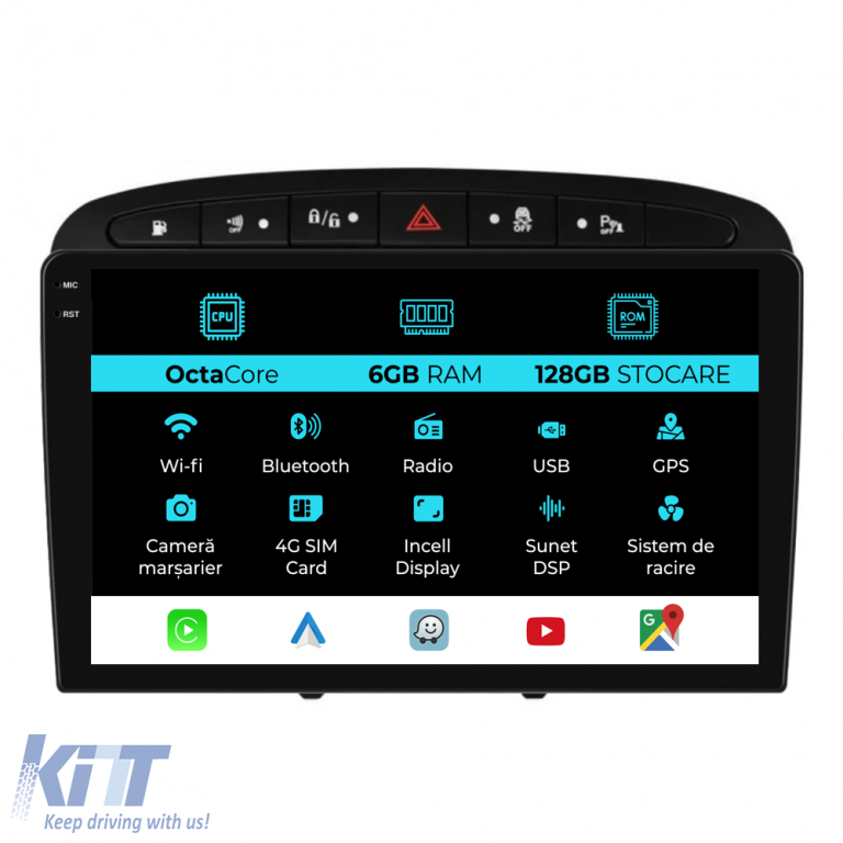 Old DescriptionOperating system: Android 13 Processor: Octa-core 1.6Ghz RAM: 6GB Internal storage (ROM): 128GB Display size: 9 Inch Screen resolution: 1360x800p Bluetooth: Bluetooth for calls downloading phonebook and playing music WiFi: Yes (Integrated) 4G Sim Slot: Yes Network connectivity: 4G phone hotspot external router 3G or 4G dongle CarPlay Android Auto Microphone: Integrated microphone with the option to connect an external microphone Power supply: 12V Audio power: 4x45W DSP Equalizer: Digital sound processor (DSP EQ) USB SD compatibility: Suitable for USB up to 128GB SD support via USB adapter Android app compatibility: Suitable for most Android apps from Google Play CarPlay and Android Auto compatibility: Yes suitable for iOS (CarPlay) and Android (Android Auto) Language support: Romanian English Hungarian Spanish Italian German etc. Screen type: Capacitive TouchScreen multi-touch IPS Brightness settings: Yes RDS Radio: Yes RCA subwoofer output: Yes RCA video output: Yes with the help of a USB adapter RCA audio output: Yes GPS: Yes (Google Maps Waze HereWeGo) Parking sensors: Yes (Integration of parking sensors with display where applicable) Steering wheel control: Yes (Integration of steering wheel controls with canbus or analog where applicable) DVR camera compatibility: Yes Reverse camera compatibility: Yes User manual: Yes Package contents: Android navigation Adapter frame Power wiring GPS antenna 4G antenna RCA connectors Wiring for reverse camera 2 USB cables Canbus (only if applicable) Warranty certificate Tax invoice The navigation is suitable for the following car brands: Peugeot: 308 (2008-2013) 408 (2008-2013)