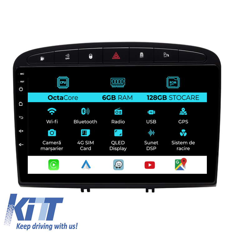Navigation for Peugeot 308, 408 (2008-2013), 9 Inch, 6Gb RAM, 128Gb Storage, Carplay