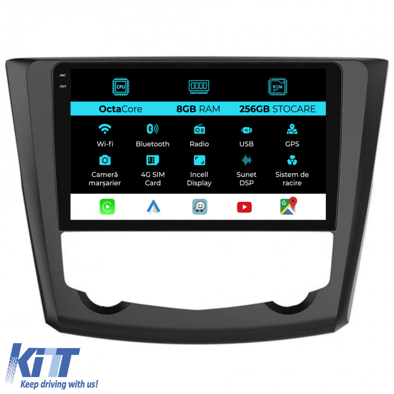 Old DescriptionOperating System: Android 13 Processor: Octa-core 1.8Ghz RAM: 8GB Internal Storage (ROM): 256GB Display Size: 9 Inch Screen Resolution: 1360x8000p Bluetooth: Bluetooth for calls contacts download and music playback WiFi: Yes (Built-in) 4G SIM Slot: Yes Network Connectivity: 4G phone hotspot external router 3G or 4G dongle CarPlay Android Auto Microphone: Built-in microphone with option to connect external microphone Power Supply: 12V Audio Power: 4x45W DSP Equalizer: Digital sound processor (DSP EQ) USB SD Compatibility: Suitable for USB up to 128GB SD support via USB adapter Android App Compatibility: Suitable for most Android applications from Google Play CarPlay and Android Auto Compatibility: Yes suitable for iOS (CarPlay) and Android (Android Auto) Supported Languages: Romanian English Hungarian Spanish Italian German etc. Screen Type: Capacitive TouchScreen multi-touch IPS Brightness Settings: Yes RDS Radio: Yes RCA Subwoofer Output: Yes RCA Video Output: Yes with the help of a USB adapter RCA Audio Output: Yes GPS: Yes (Google Maps Waze HereWeGo) Parking Sensors: Yes (Retrieving parking sensor display where applicable) Steering Control: Yes (Retrieving steering commands with canbus or analog where applicable) DVR Camera Compatibility: Yes Reverse Camera Compatibility: Yes User Manual: Yes Package Contents: Android Navigation Adapter Frame Power Wiring GPS Antenna 4G Antenna RCA Connectors Wiring for reverse camera 2 USB cables Canbus (only if applicable) Warranty Certificate Fiscal Invoice Navigation is suitable for the following car brands: Renault: Kadjar (2015 – 2019)