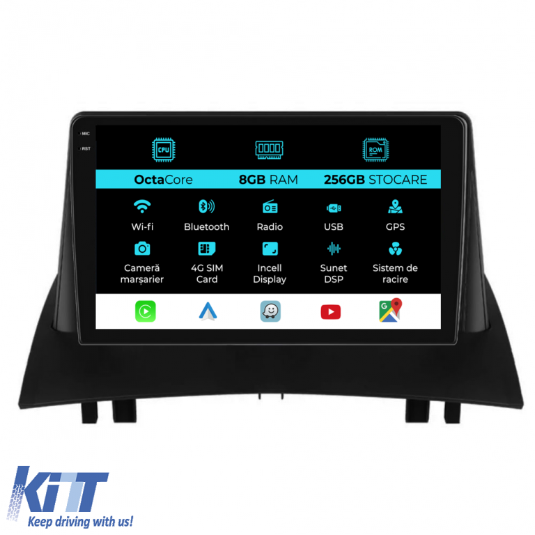 Old DescriptionOperating system: Android 13 Processor: Octa-core 1.8Ghz RAM: 8GB Internal storage (ROM): 256GB Display size: 9 Inch Screen resolution: 1360x8000p Bluetooth: Bluetooth for calls phonebook download and music playback WiFi: Yes (Integrated) 4G SIM Slot: Yes Network connectivity: 4G phone hotspot external router 3G or 4G dongle CarPlay Android Auto Microphone: Built-in microphone with the option to connect an external microphone Power supply: 12V Audio power: 4x45W DSP Equalizer: Digital sound processor (DSP EQ) USB SD compatibility: Suitable for USB up to 128GB SD support via USB adapter Android app compatibility: Suitable for most Android apps from Google Play CarPlay and Android Auto compatibility: Yes suitable for iOS (CarPlay) and Android (Android Auto) Language support Romanian English Hungarian Spanish Italian German etc. Screen type: Capacitive TouchScreen multi-touch IPS Brightness settings: Yes RDS Radio: Yes RCA subwoofer output: Yes RCA video output: Yes with the help of a USB adapter RCA audio output: Yes GPS: Yes (Google Maps Waze HereWeGo) Parking sensors: Yes (Parking sensor pickup with display where applicable) Steering control: Yes (Steering commands pickup with canbus or analog where applicable) DVR camera compatibility: Yes Reverse camera compatibility: Yes User manual: Yes Package contents: Android Navigation Adapter frame Power wiring GPS antenna 4G antenna RCA connectors Wiring for reverse camera 2 USB cables Canbus (only if applicable) Warranty certificate Invoice Navigation is suitable for the following car brands: Renault: Megane 2 (2002 – 2009)