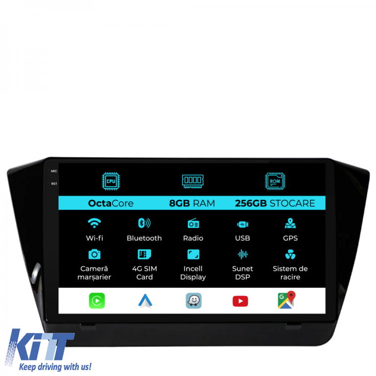 Old DescriptionOperating system: Android 13 Processor: Octa-core 1.8Ghz RAM: 8GB Internal storage (ROM): 256GB Display size: 10 Inch Screen resolution: 1280x800p Bluetooth: Bluetooth for calls phonebook download and music playback WiFi: Yes (Integrated) 4G SIM Slot: Yes Network connectivity: 4G phone hotspot external router 3G or 4G dongle CarPlay Android Auto Microphone: Integrated microphone with the option to connect an external microphone Power supply: 12V Audio power: 4x45W DSP Equalizer: Digital sound processor (DSP EQ) USB SD compatibility: Suitable for USB up to 128GB SD support via USB adapter Android app compatibility: Suitable for most Android applications from Google Play CarPlay and Android Auto compatibility: Yes suitable for iOS (CarPlay) and Android (Android Auto) Language support: Romanian English Hungarian Spanish Italian German etc. Screen type: Capacitive TouchScreen multi-touch IPS Brightness settings: Yes RDS Radio: Yes RCA subwoofer output: Yes RCA video output: Yes with the help of a USB adapter RCA audio output: Yes GPS: Yes (Google Maps Waze HereWeGo) Parking sensors: Yes (Integration of parking sensors with display where applicable) Steering wheel control: Yes (Integration of steering wheel commands with canbus or analog where applicable) DVR camera compatibility: Yes Rear view camera compatibility: Yes User manual: Yes Package contents: Android navigation Adapter frame Power wiring GPS antenna 4G antenna RCA connectors Wiring for rear view camera 2 USB cables Canbus (only if applicable) Warranty certificate Tax invoice Navigation is suitable for the following car brands: Skoda: Superb 3 (2015 – 2019)