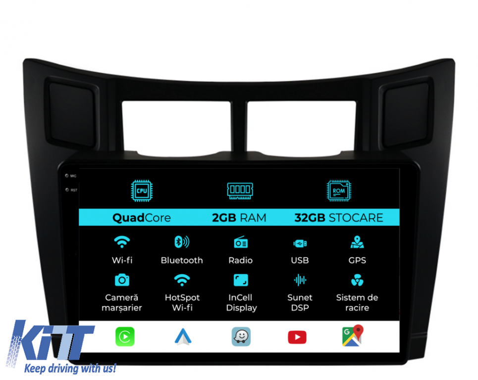 Navigation for Toyota Yaris, 2005-2011, 9 Inch, 2Gb Ram, 32Gb Storage, Carplay