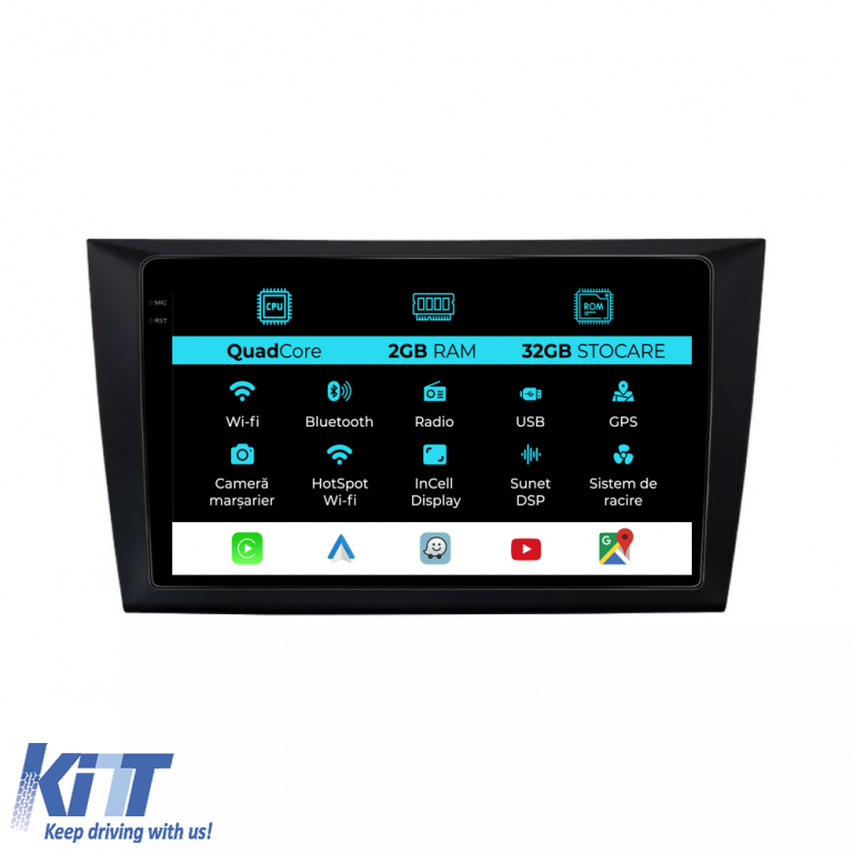 Old DescriptionOperating system: Android 13 Processor: Quadcore RAM: 2GB Internal storage (ROM): 32GB Display size: 9 Inch Screen resolution: 1360x800p Bluetooth: Bluetooth for calls downloading phonebook and music playback WiFi: Yes (Built-in) 4G Sim slot: No Network connectivity: Phone hotspot external router 3G or 4G dongle CarPlay Android Auto Microphone: Built-in microphone with option to connect external microphone Power supply: 12V Audio power: 4x45W DSP equalizer: Digital sound processor (DSP EQ) USB SD compatibility: Suitable for USB up to 128GB SD support via USB adapter Android applications compatibility: Suitable for most Android applications from Google Play CarPlay and Android Auto compatibility: Yes suitable for iOS (CarPlay) and Android (Android Auto) Language support: Romanian English Hungarian Spanish Italian German etc. Screen type: Capacitive TouchScreen multi-touch IPS Brightness settings: Yes RDS Radio: Yes RCA subwoofer output: Yes RCA video output: Yes with the help of a USB adapter RCA audio output: Yes GPS: Yes (Google Maps Waze HereWeGo) Parking sensors: Yes (Takeover parking sensors with display where applicable) Steering wheel control: Yes (Takeover steering wheel controls with canbus or analog where applicable) DVR camera compatibility: Yes Reversing camera compatibility: Yes User manual: Yes Package contents: Android navigation Adapter frame Power wiring GPS antenna RCA connectors Wiring for reversing camera 2 USB cables Canbus (only if applicable) Warranty certificate Tax invoice Navigation is suitable for the following car makes: VOLKSWAGEN: Golf 6 (2009 – 2013)