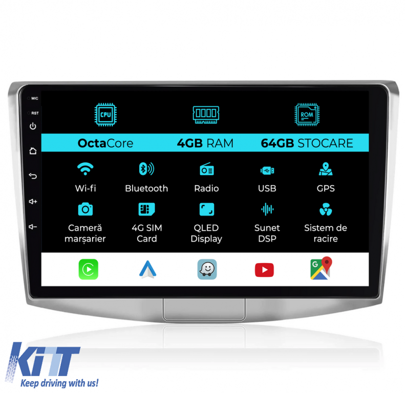 Old DescriptionOperating System: Android 13 Processor: Octa-core RAM: 4GB Internal Storage (ROM): 64GB Display Size: 9 Inch Screen Resolution: 1280x720p Bluetooth: Bluetooth for calls phonebook download and music playback WiFi: Yes (Integrated) 4G SIM Slot: Yes Network Connectivity: 4G Phone hotspot external router 3G or 4G dongle CarPlay Android Auto Microphone: Built-in microphone with the ability to connect an external microphone Power Supply: 12V Audio Power: 4x45W DSP Equalizer: Digital Sound Processor (DSP EQ) USB SD Compatibility: Suitable for USB up to 128GB SD support via USB adapter Android Apps Compatibility: Suitable for most Android apps from Google Play CarPlay and Android Auto Compatibility: Yes suitable for iOS (CarPlay) and Android (Android Auto) Language Support: Romanian English Hungarian Spanish Italian German etc. Screen Type: Capacitive TouchScreen multi-touch IPS Brightness Settings: Yes RDS Radio: Yes RCA Subwoofer Output: Yes RCA Video Output: Yes with the help of a USB adapter RCA Audio Output: Yes GPS: Yes (Google Maps Waze HereWeGo) Parking Sensors: Yes (Retrieving parking sensors with display where applicable) Steering Wheel Control: Yes (Retrieving steering wheel commands with canbus or analog where applicable) DVR Camera Compatibility: Yes Reverse Camera Compatibility: Yes User Manual: Yes Package Contents: Android Navigation Adapter frame Power cable GPS antenna 4G antenna RCA connectors Wiring for reverse camera 2 USB cables Canbus (only if applicable) Warranty certificate Invoice The navigation is suitable for the following car brands: VOLKSWAGEN: Passat B6 (2005 – 2011) Passat B7 (2011 – 2015) Passat CC (2008 – 2015)