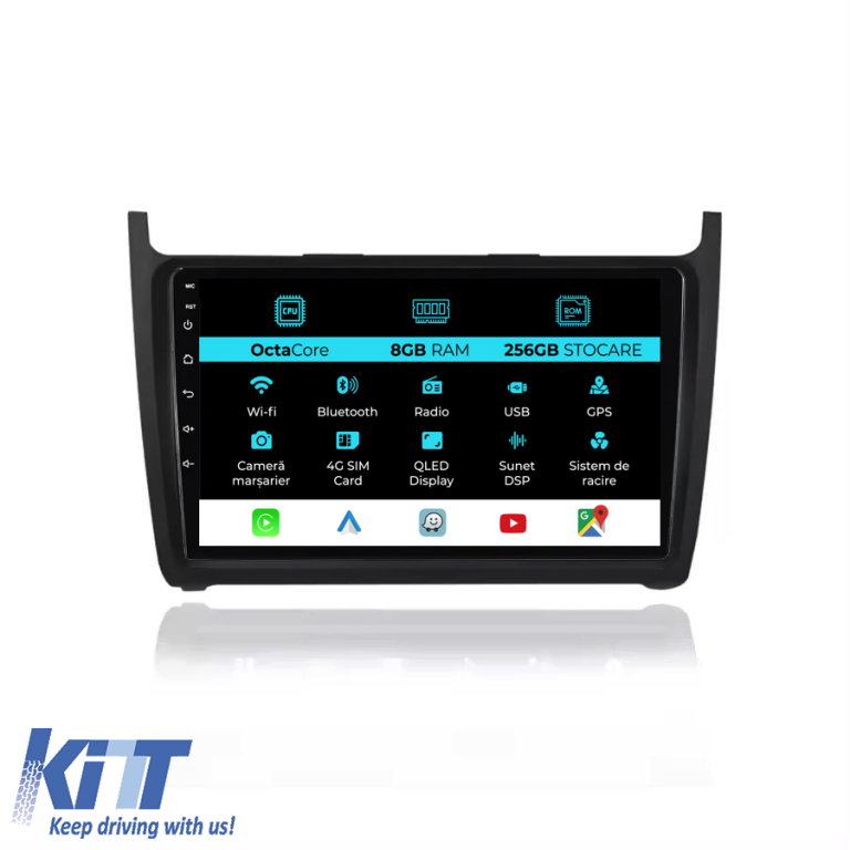 Old DescriptionOperating system: Android 13 Processor: Octa-core 2.0Ghz RAM memory: 8GB Internal storage (ROM): 256GB Display size: 9 Inch Screen resolution: 1280x720p Bluetooth: Bluetooth for calls downloading contact list and playing music WiFi: Yes (Integrated) 4G SIM slot: Yes Network connectivity: 4G phone hotspot external router 3G or 4G dongle CarPlay Android Auto Microphone: Built-in microphone possibility of connecting an external microphone Power supply: 12V Audio power: 4x45W DSP equalizer: Digital sound processor (DSP EQ) USB SD compatibility: Suitable for USB up to 128GB SD support via USB adapter Android app compatibility: Suitable for most Android applications from Google Play CarPlay and Android Auto compatibility: Yes suitable for iOS (CarPlay) and Android (Android Auto) Language support: Romanian English Hungarian Spanish Italian German etc. Screen type: Capacitive touchscreen multi-touch IPS Brightness settings: Yes RDS radio: Yes RCA subwoofer output: Yes RCA video output: Yes with the help of a USB adapter RCA audio output: Yes GPS: Yes (Google Maps Waze HereWeGo) Parking sensors: Yes (Parking sensors with display where applicable) Steering wheel control: Yes (Steering wheel control via canbus or analog where applicable) DVR camera compatibility: Yes Rearview camera compatibility: Yes User manual: Yes Package contents: Android navigation Adapter frame Power wiring GPS antenna 4G antenna RCA connectors Wiring for rearview camera 2 USB cables Canbus (only if applicable) Warranty certificate Fiscal invoice The navigation is suitable for the following car brands: VOLKSWAGEN: Polo (2009-2018)