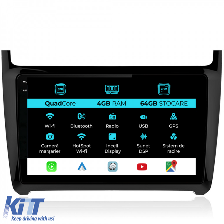 Navigation for Volkswagen Polo, 2009-2018, QuadCore, 9 Inch, 4Gb Ram, 64Gb Storage, Carplay