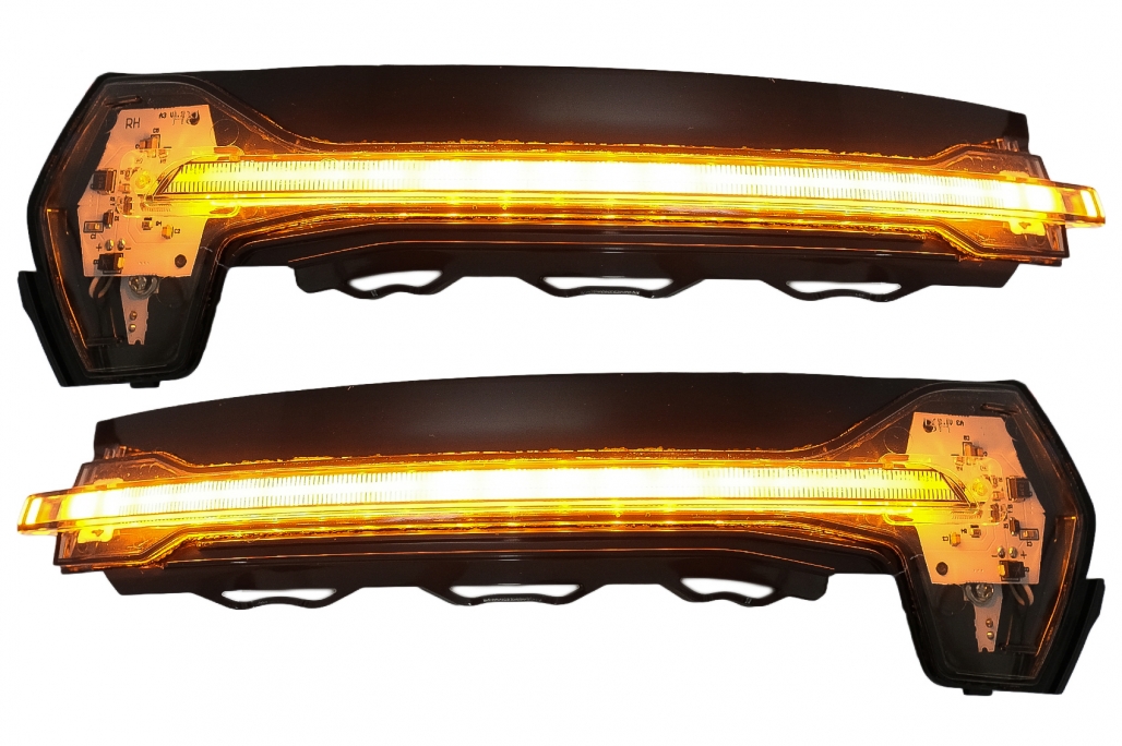 Audi RS3 8VA (4.2015-)DescriptionThey score based on innovative high-performance LEDs with up to 200% more brightness (Compared to the minimum requirements of ECE R6) and impressive high contrast during day and night due to intensive yellow LED light (Compared to other mirror indicators) Thanks to the latest light guide technology they also offer a homogeneous light distribution over the to be illuminated surface. As result of all these aspects there is the possibility of an improved perception of your vehicle by oncoming traffic and consequently increased safety in road traffic. In addition OSRAM grants a 5-year guarantee (for precise conditions please refer to: www.osram.com/am-guarantee)