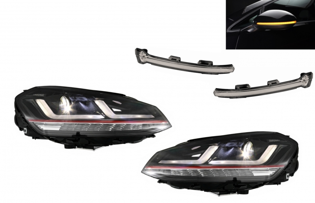 Osram Full LED Headlights with Dynamic Mirror Indicators suitable for or VW Golf 7 VII (2012-2017) Red GTI Upgrade Xenon&Halogen