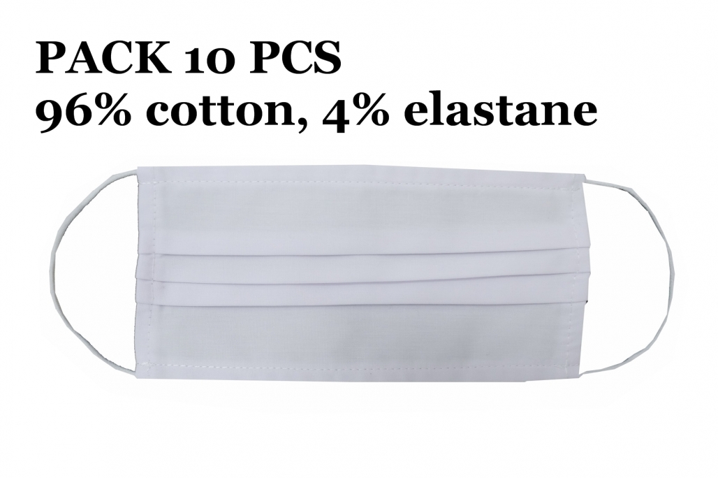 Package of 10 Reusable Mask with Folds 96% Cotton and 4% Elastane 2 Layers Unisex Washable
