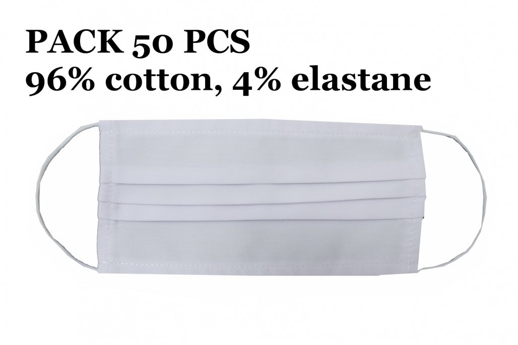 Package of 50 Reusable Mask with Folds 96% Cotton and 4% Elastane 2 Layers Unisex Washable