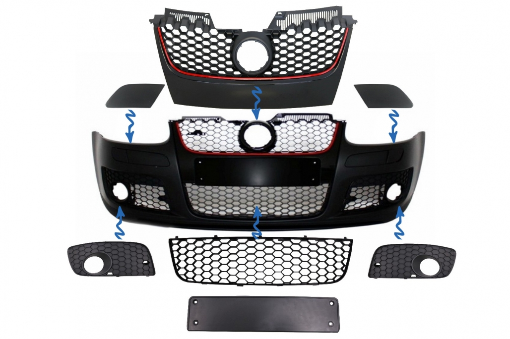 IntroThese Front Bumper Parts are meant to replace the lost or damaged original parts.Suitable forVW Golf 5 V MK5 (2003-2007) equipped with aftermarket GTI Front BumperNot suitable forVW Golf 5 V (2003-2007) Genuine GTI