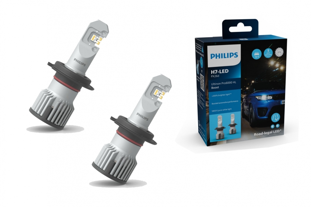 IntroDiscover the LED standard offered by Philips Ultinon Pro6000. Approved for use on public roads in many countries and compatible with various vehicle models it increases brightness by 300%** and improves visibility for safer travel.Suitable forH7