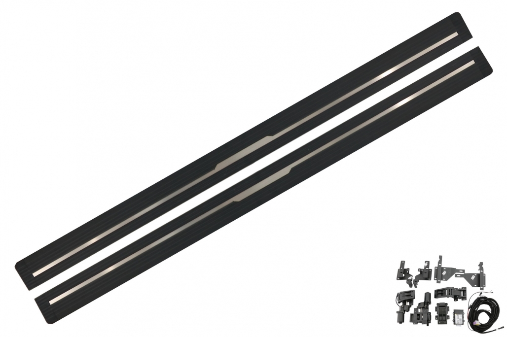 Full electric running boards equipped with control modules and motors.
