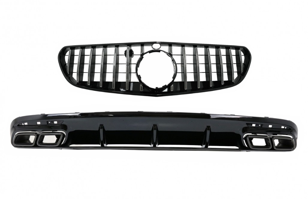 Rear Bumper Air Diffuser with Black Muffler Tips suitable for Mercedes S-Class C217 Coupe A217 Cabrio (2018-2020) and Central Grille S63 Facelift Design