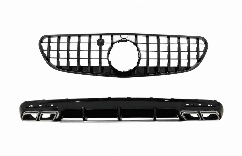 Rear Bumper Air Diffuser with Chrome Muffler Tips and Central Grille Black suitable for Mercedes S-Class C217 Coupe A217 Cabrio (2018-2020) S63 GT-R Design