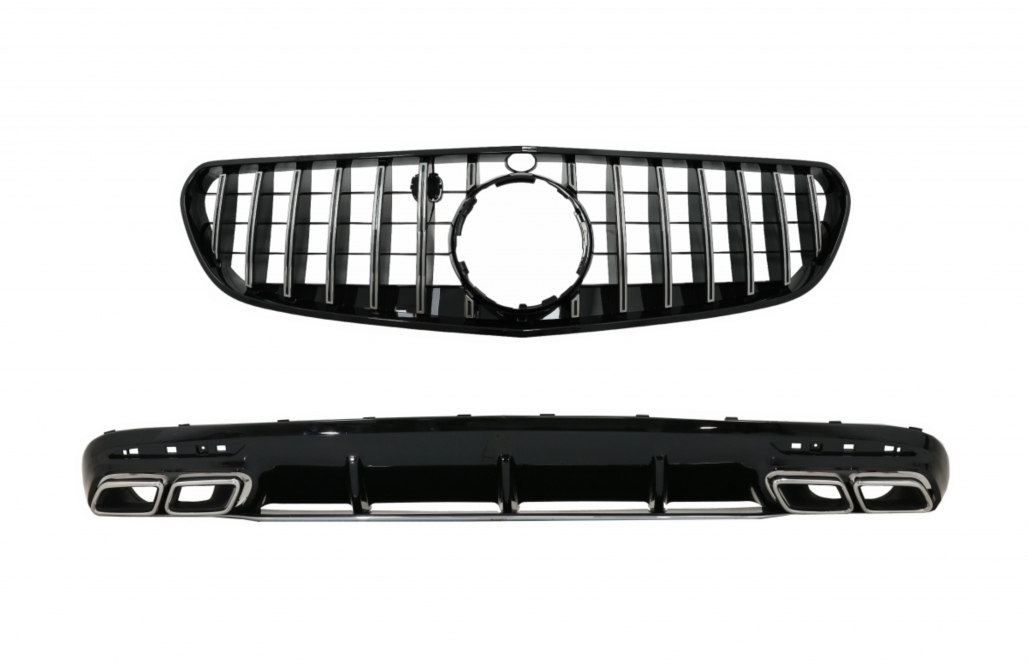 Rear Bumper Air Diffuser with Chrome Muffler Tips and Centrale Grille suitable for Mercedes S-Class C217 Coupe A217 Cabrio (2014-2017) S63 GT-R Design