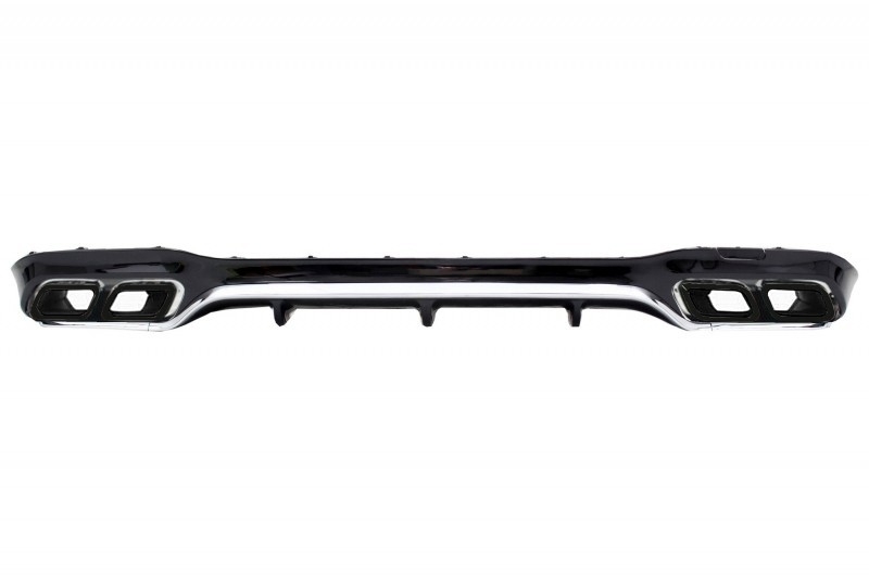 Rear Bumper Air Diffuser with Exhaust Muffler Tips Black suitable for Mercedes E-Class W213 AMG Line (2016-2019) E63 Design