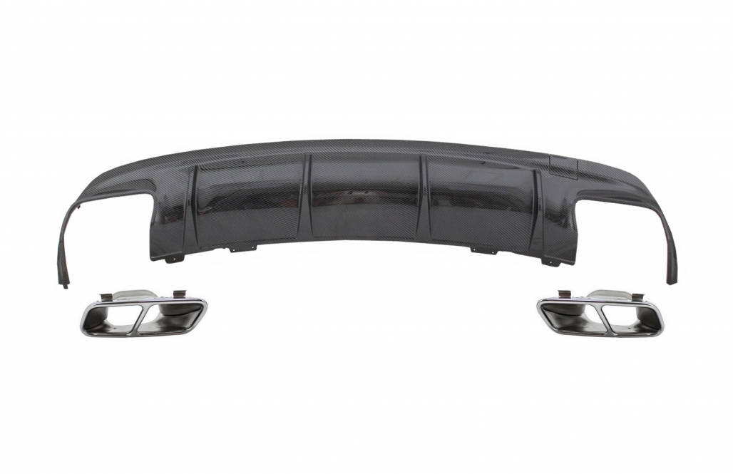 Rear Bumper Air Diffuser with Exhaust Muffler Tips Chrome suitable for Mercedes CLA W117 (2013-2018) Facelift CLA45 Carbon Design