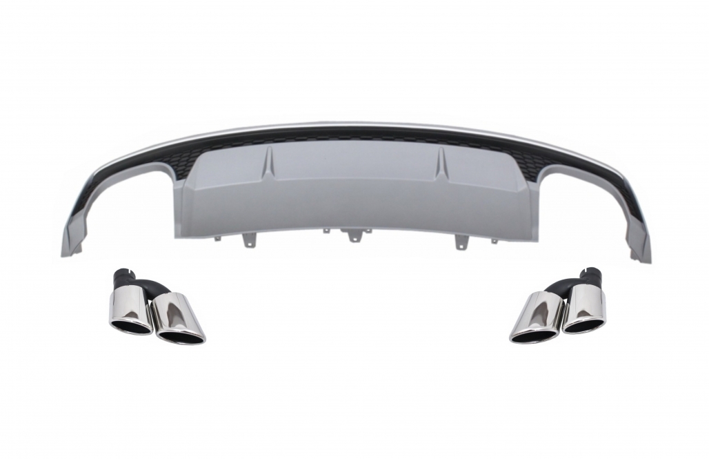 Rear Bumper Air Diffuser with Exhaust Muffler Tips suitable for Audi A7 4G Facelift (2015-2018) S7 Design Only S Line Bumper