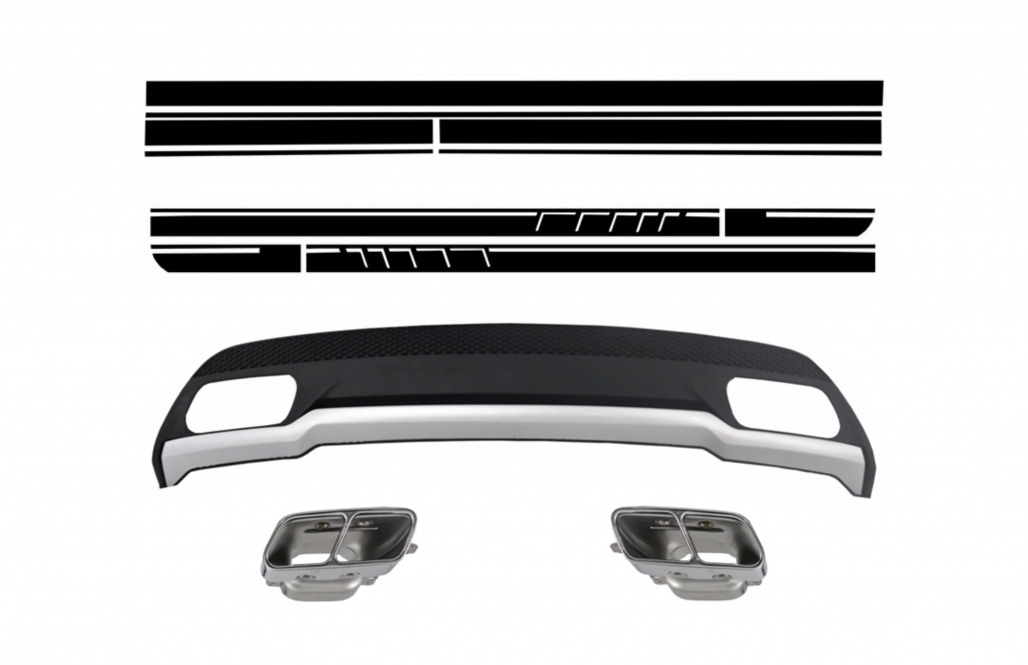Rear Bumper Air Diffuser with Exhaust Tips and Stickers Black for Mercedes A-Class W176 (2012-2018) Sport Pack