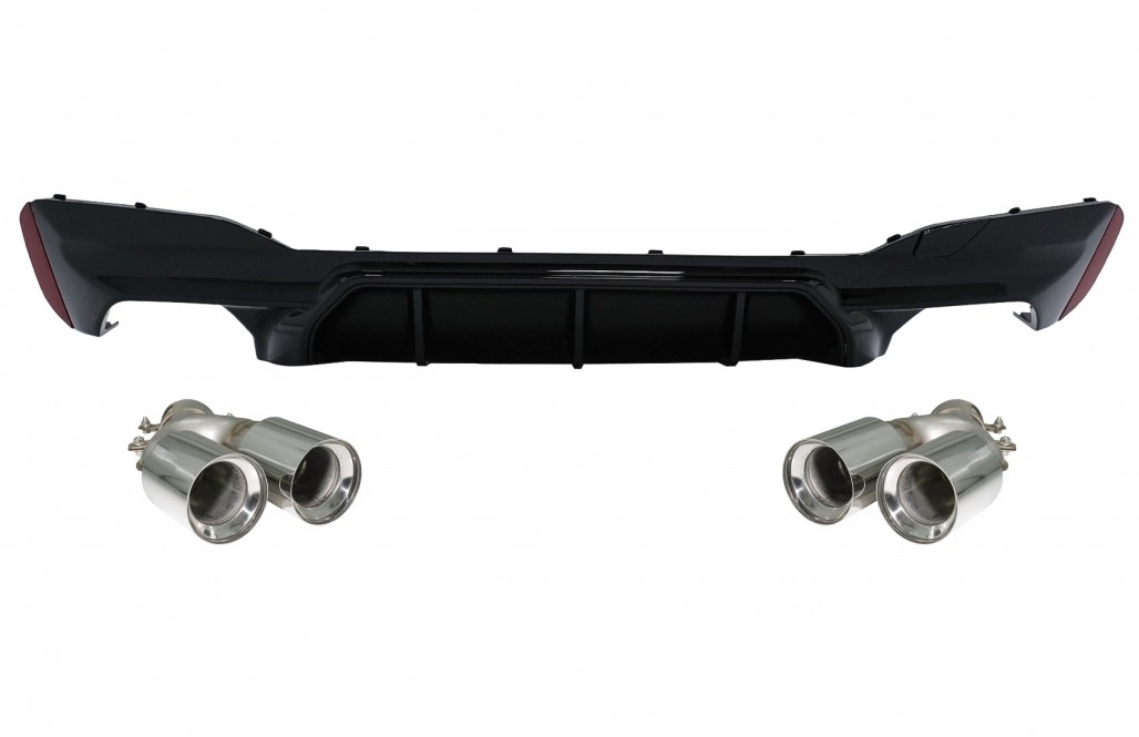 Rear Bumper Diffuser Piano Black with Exhaust Muffler Tips Chrome suitable for BMW 5 Series G30 G31 Limousine Touring (2017-2020) M5 Design
