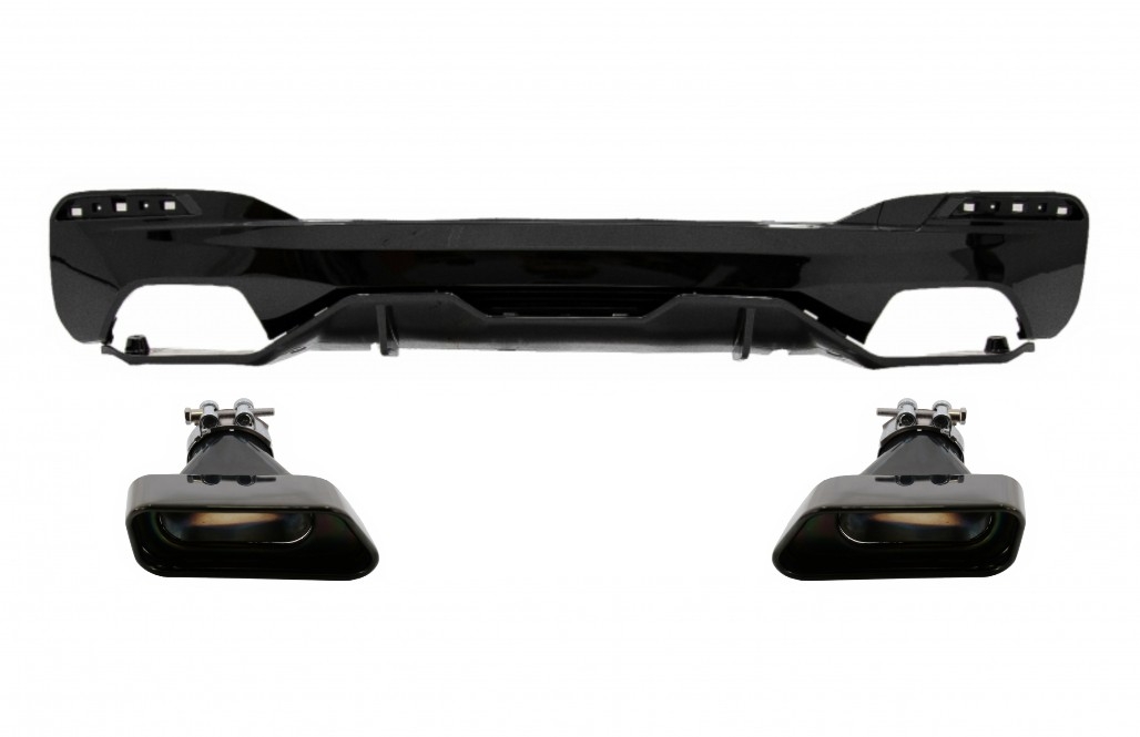 Rear Bumper Diffuser suitable for BMW 5 Series G30 G31 Limousine Touring (2017-up) with Exhaust Muffler Tips M Performance Design Black
