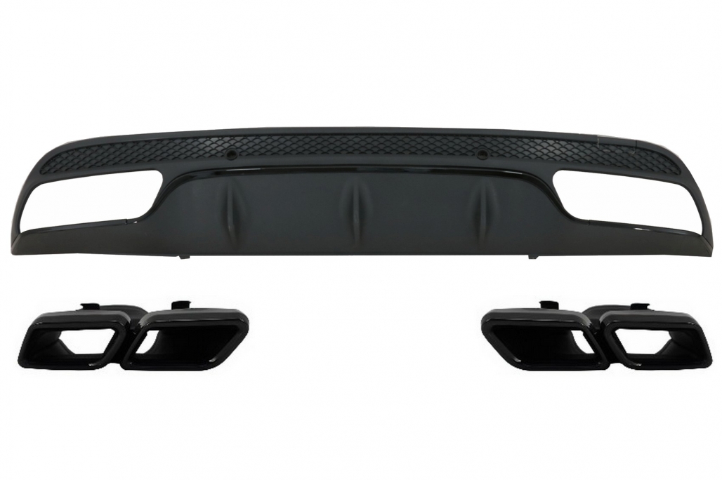 * All Diesel Bluetec models with ADBLUE will require modification of one tailpipe to fit as the Adblue tank resides behind the tailpipe.DescriptionRear Bumper Air Diffuser crafted in high quality ABS plastic equipped with double exhaust outlets