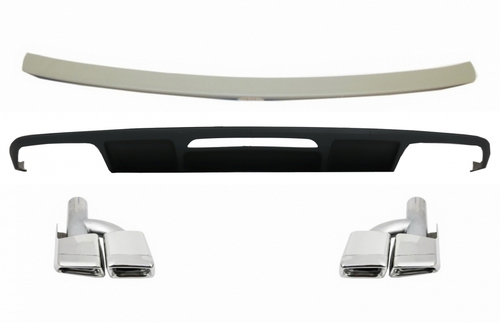 Rear Bumper Diffuser suitable for Mercedes CLS Sedan W218 (2011-2017) Trunk Spoiler and Exhaust Muffler Tips Tail Pipes Only for AMG Sport Line