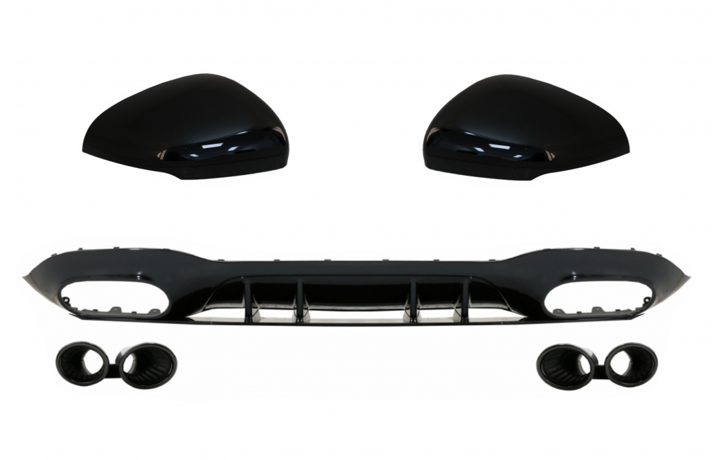 Rear Bumper Diffuser with Black Exhaust and Mirror Cover suitable for Mercedes A-Class V177 Sedan (09.2018-2022)