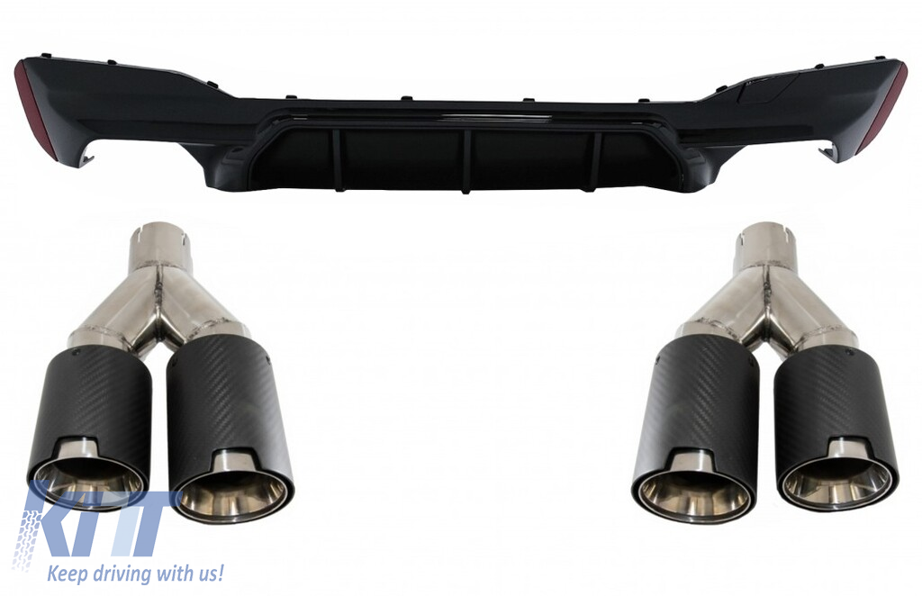Rear Bumper Diffuser with Carbon Twin Exhaust Muffler Tips 6.8cm/2.67inch suitable for BMW 5 Series G30 G31 (2017-up) M5 Design Piano Black
