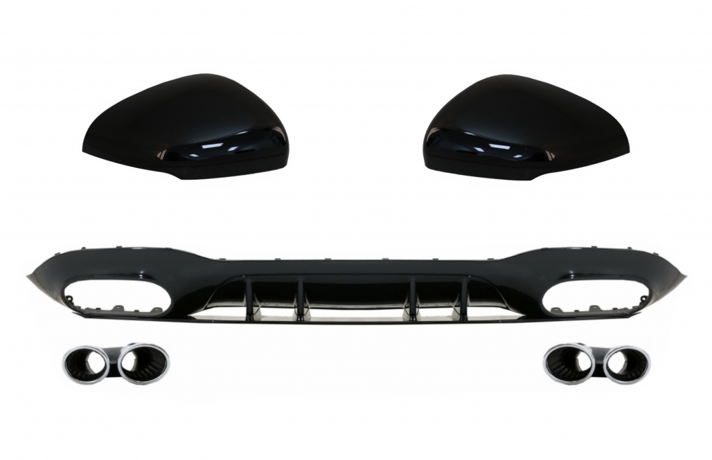 Rear Bumper Diffuser with Chrome Exhaust and Mirror Cover suitable for Mercedes A-Class V177 Sedan (09.2018-2022)