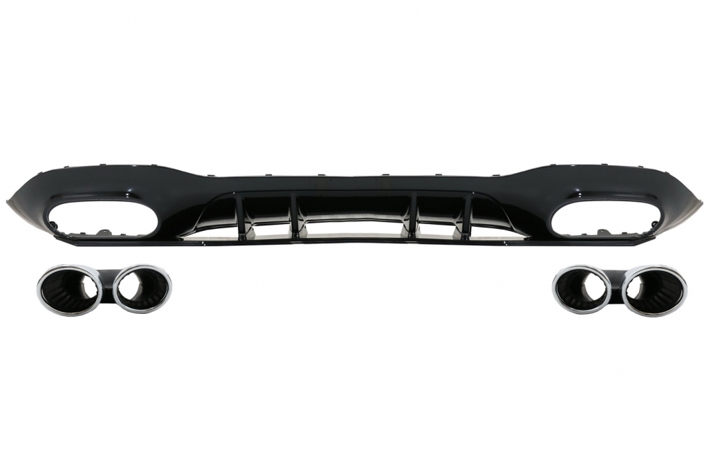 Rear Bumper Diffuser with Chrome Exhaust and Mirror Covers suitable for Mercedes A-Class W177 Hatchback (05.2018-2022)