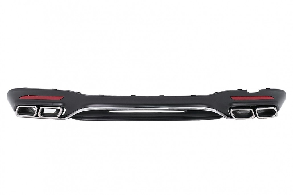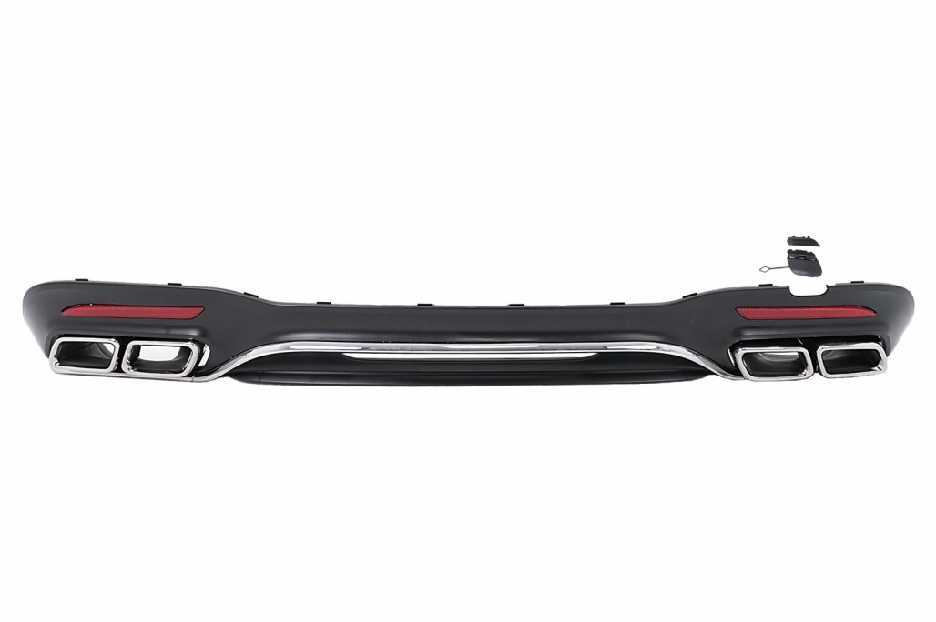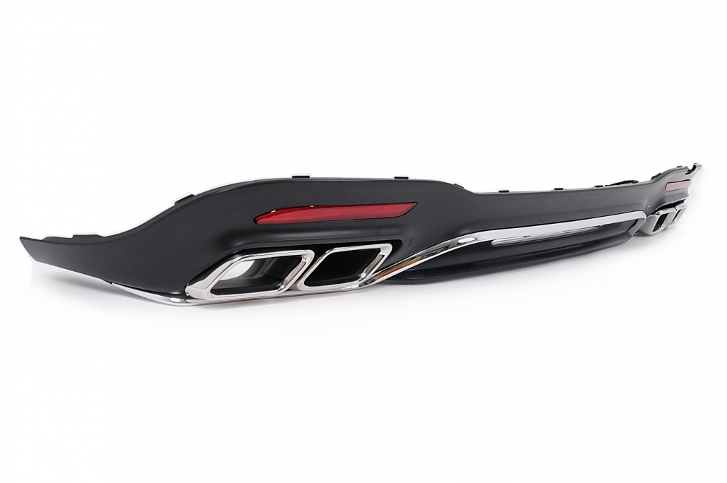 Rear Bumper Diffuser with Chrome Exhaust Muffler Tips suitable for Mercedes S-Class W222 Facelift Sport Line (2017-2020) S63 Design